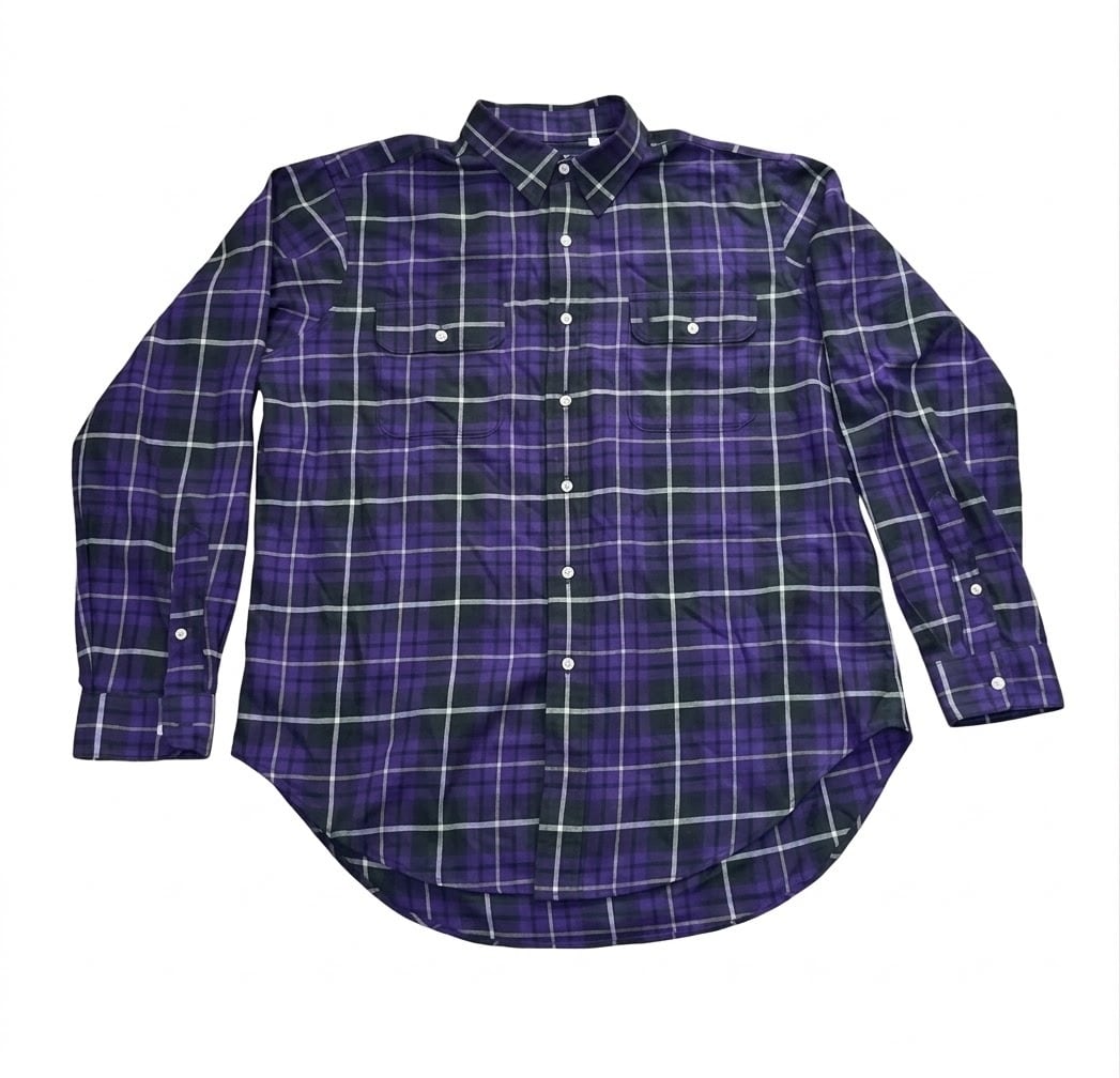 濃い紫色と緑のチェック柄がオシャレな、オーバーサイズのシャツです!